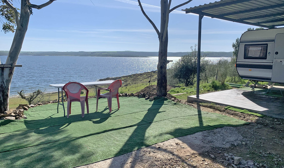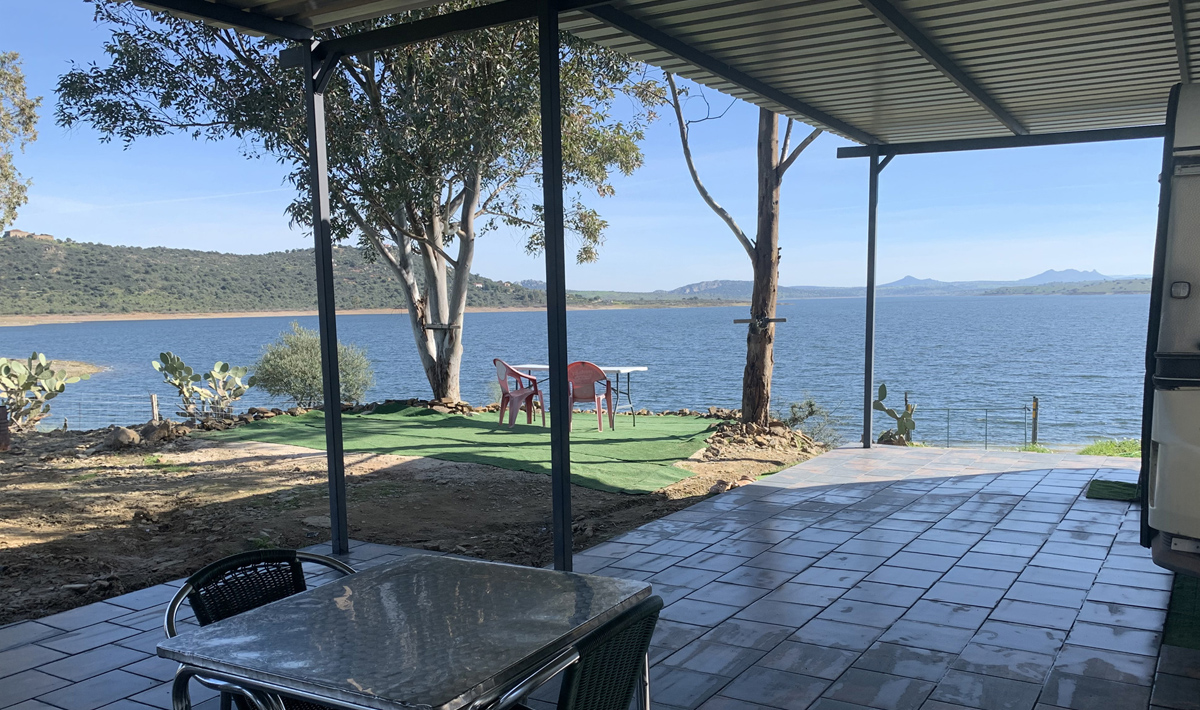 A través de un verdadero camino de arena español se llega a La Caravana de la Pesca a orillas de un enorme embalse, Orellana, en la provincia de Extremadura. Con un verdadero camino español queremos decir eso literalmente, porque los últimos 4 kilómetros son por un camino de tierra con piedras y rocas. Pero bueno, si los españoles pueden pasar por ahí, ¿por qué nosotros no? Es cuestión de conducir con calma y entonces funciona bien. Después de este emocionante viaje (notarás que cuanto más lo conduzcas, más rápido te atreverás) llegarás a un merecido paraíso. Este lugar está realmente en la naturaleza salvaje española. Si te gusta la paz y el espacio, ¡este lugar es definitivamente recomendable!