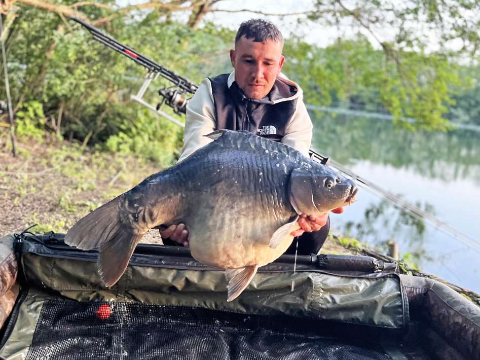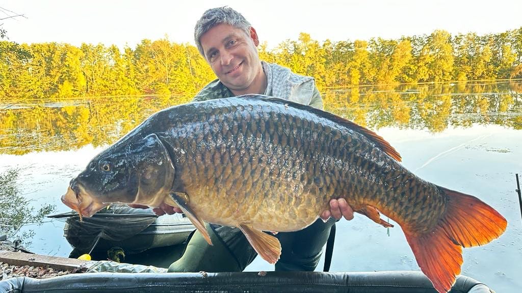 La población de peces aún no se conoce del todo en Chef de Ville. A pesar de que antes también era un agua de pago con una excelente población de peces, no se ha pescado activamente en los años intermedios. Cuando Anthony navegó por primera vez en barco por el agua, grandes bancos de grandes carpas nadaron con él. Pero, por supuesto, no se pueden leer los pesos aquí. Esto hace que sea aún más emocionante descubrir la población de peces junto con nosotros. Mientras tanto, se han comprado nuevos peces a un criador reconocido y se han liberado en Chef de Ville. Estos están microchipados. Se trata de 350 carpas. También se establecerá un programa de liberación con peces de entre 12 y 15 kilos, dependiendo de lo que salga a la superficie de la antigua población. Esto es para mantener el peso medio a un buen nivel.