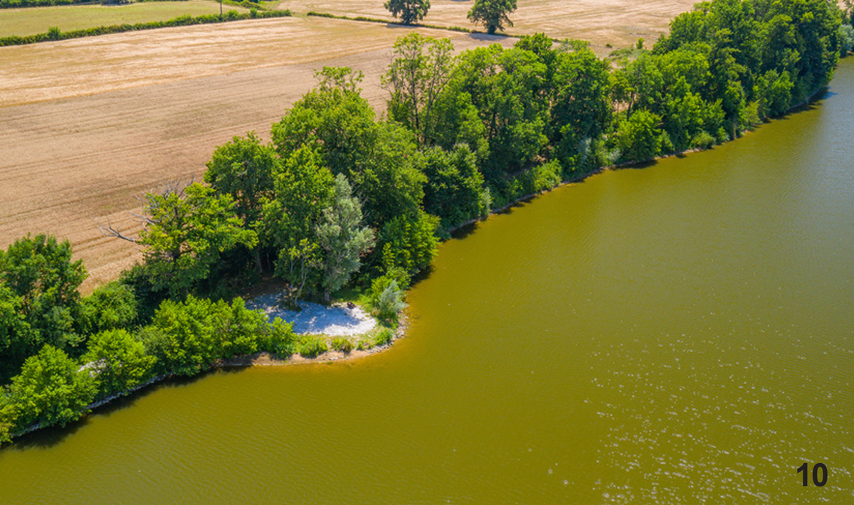 El lago tiene siglos de antigüedad y se encuentra entre las colinas del típico paisaje francés. El fondo es alternativamente duro y blando y el agua es muy saludable. Es rico en alimentos naturales como mejillones, cangrejos de río y lombrices de sangre. Además, hay grandes cantos rodados en diferentes lugares en el fondo, lo que a su vez es un buen escondite para alimentos naturales de la carpa. Ciertamente vale la pena dedicar algo de tiempo extra a evaluar adecuadamente su puesto y encontrar los hot spots.